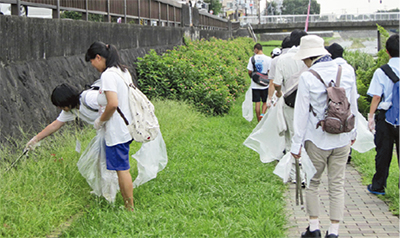 中高生がごみ拾い