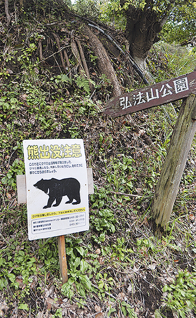 弘法山付近、北矢名の柿畑で10月28日、ツキノワグマの痕跡が確認された。翌29日、30日にも自興院奥の柿畑に仕掛けたセンサーカメラにクマの姿が撮影されており、秦野市は登山口などに看板を掲示し、ハイカーなどに向けて注意を呼び掛けている。