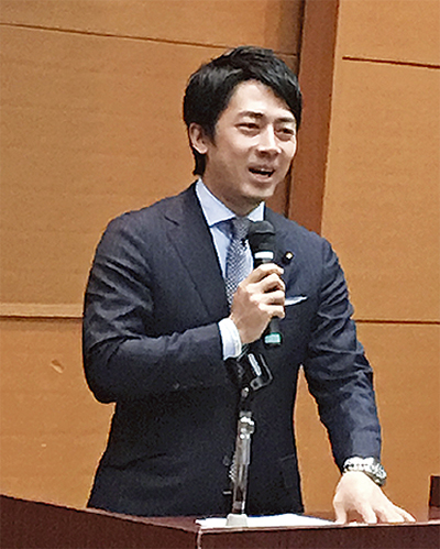 秦野商工会議所で2月14日、神奈川県森林土木建設業協会(山本善一会長)の会員交流を目的とした講演会が小泉進次郎衆議院議員を講師に迎えて行われた。