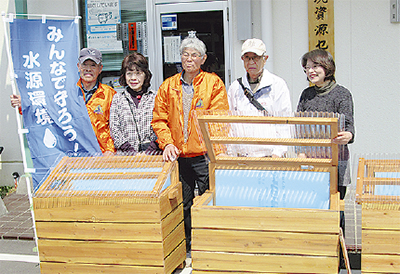 NPO法人四十八瀬川自然村(小野均代表)とボランティアで製作した木製コンポスト20基が、3月30日に同団体から秦野市へ寄贈された。