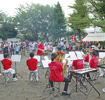 秦野市沼代地域の夏祭り「第7回ぬましろ納涼祭」が8月19日、よねやま公園で開かれ約600人の人達が夏のひと時を楽しんだ。沼代自治会連合会主催。