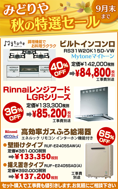 給湯器エコジョーズも65%オフ