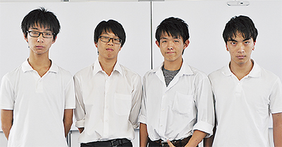 2年の武藤悠介さん、高橋俊介さん、勝股晴大(はると)さん、中山大樹(たいき)さんで予選を勝ちぬき、2年ぶりの関東出場を決めた。本大会へは武藤さんと高橋さんが大原高校とペアを組み出場する。