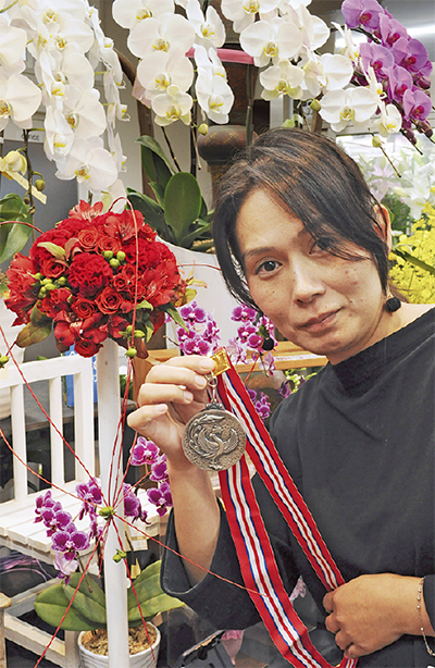 加藤生花店(本町)の高橋里江さん(40)は、11月11日に行われた神奈川県技能士会連合会ほか主催の「第49回技能コンクール」に出場。フラワー装飾部門で2位を獲得した。