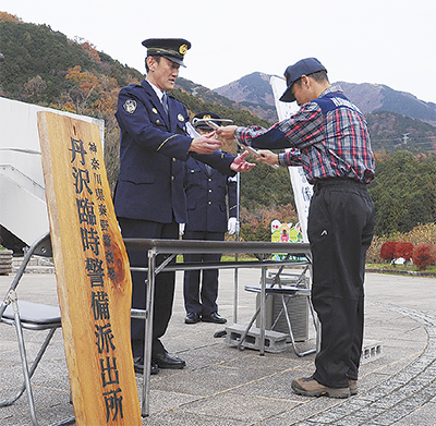 山岳救助の拠点として、登山者の安全を守ってきた秦野警察署(片山真署長)の丹沢臨時警備派出所の閉所式が12月8日、神奈川県立秦野戸川公園パークセンター前で行われた。