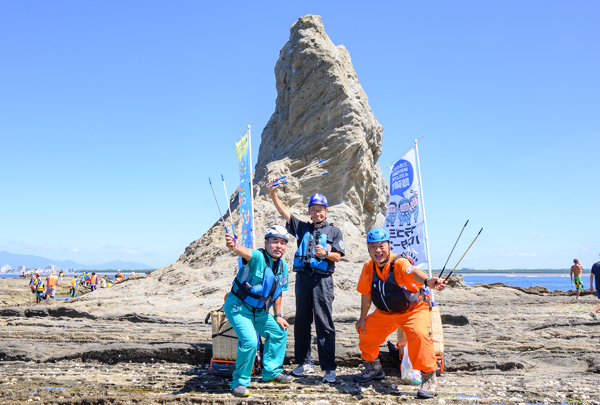 だからこそ安全管理を徹底。仕事や磯釣り経験で培った的確な気象予測で活動日を決め、津波警報などに備えて避難ルートも調べました。下見をし、毎回複数の終点候補地を用意していましたが、駅からも遠くバス便もわずかな地域もあり、頭を悩ませたことも。三浦半島では、潮が満ちると道がなくなる箇所も多く、時間との闘いになることも少なくありませんでした。