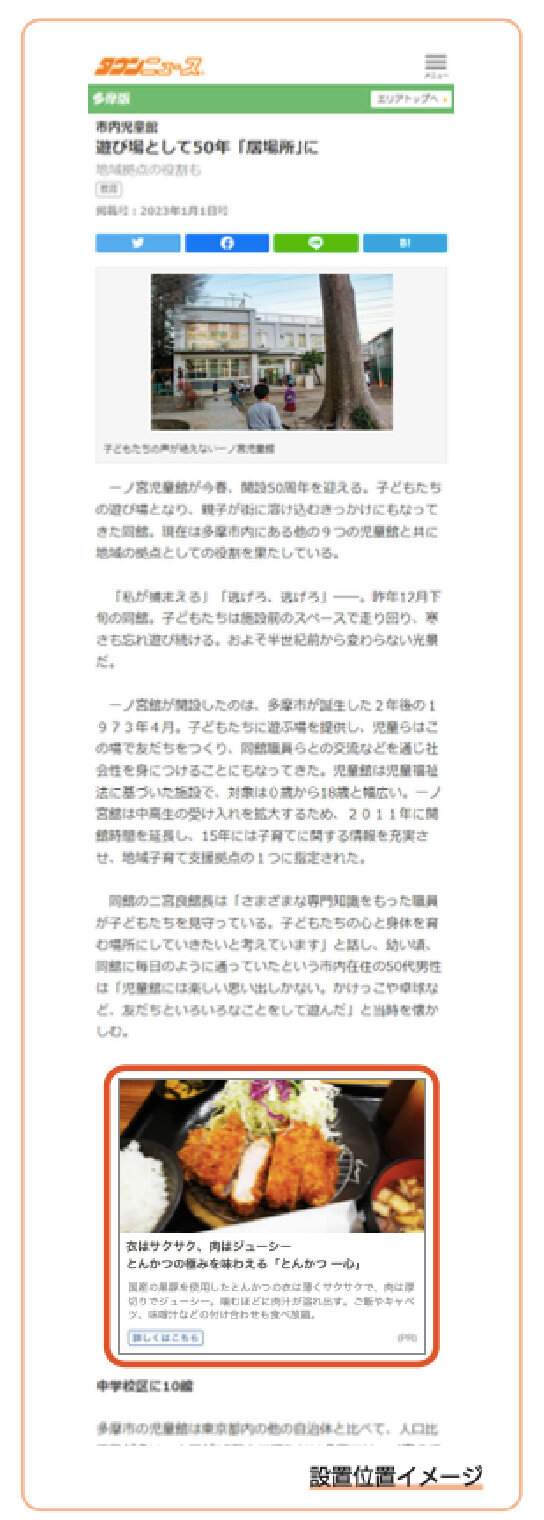 「ローカルニュース」を含むすべての記事ページに広告を設置し、