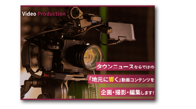 地域を知るタウンニュースだからこそのロケハンと取材力を活かした動画制作も提供しています。自治体、地方銀行、不動産、飲食店など多彩な制作実績があります。