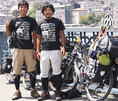 横浜国立大学・大学院1年の田澤儀高さん(瀬谷区出身)と加藤功甫さんが、自転車でのユーラシア大陸横断を成し遂げた。2人は2011年4月に日本を出発。約2万キロを走破し、今年3月横浜でゴールテープを切った。