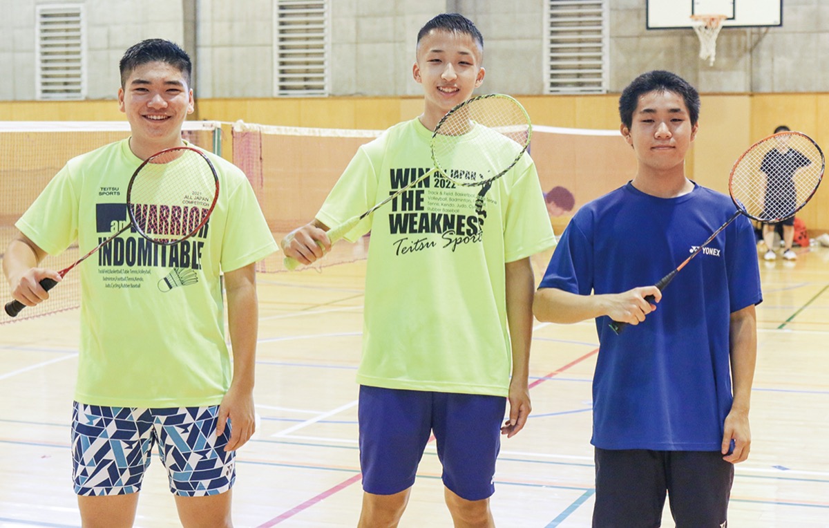 秀英高校=和泉町=のバドミントン部に所属する市川真大さん(3年)、丹治勇介さん(3年)、澤井光貴さん(2年)が今夏、小田原アリーナで行われた第24回全国高校定時制通信制体育大会の団体戦に神奈川Aチームとして出場し、優勝を果たした。