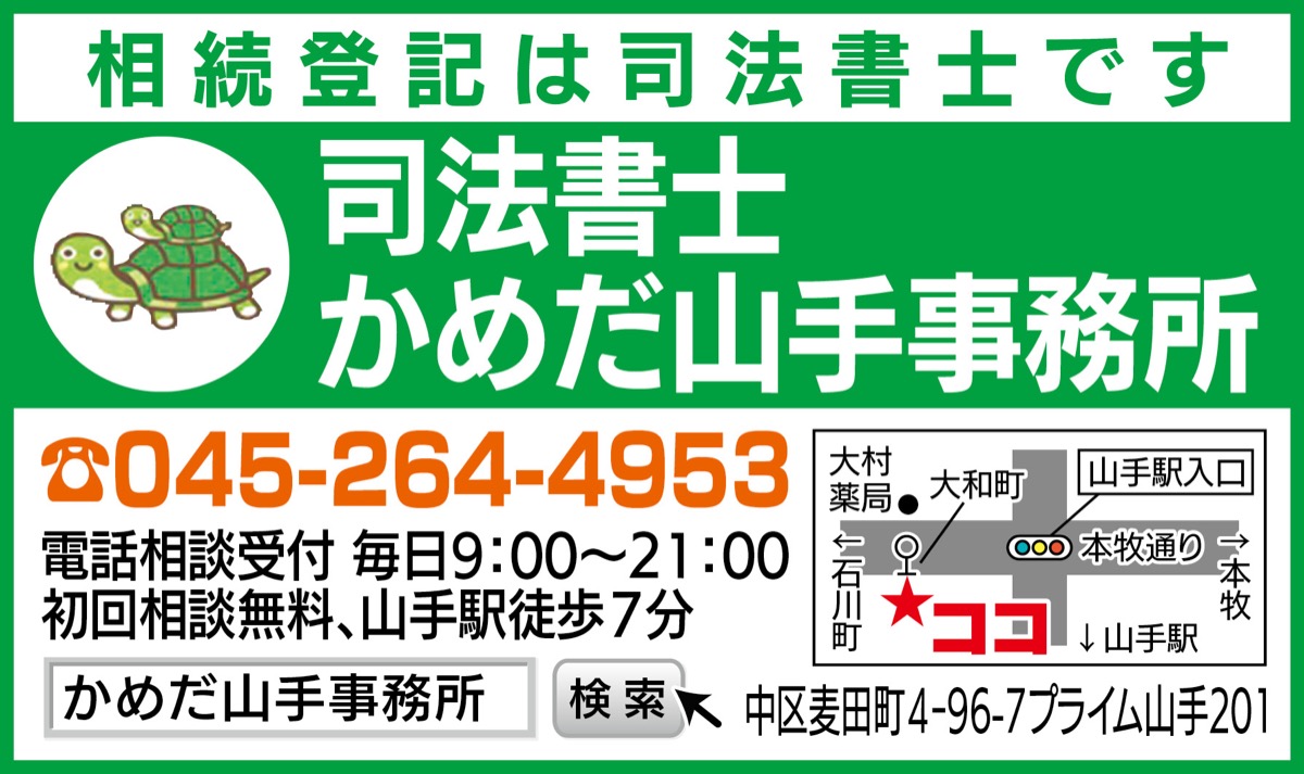 市営バス案内アナウンスでもお馴染み、大和町バス停目の前にある「司法書士かめだ山手事務所」=中区麦田町(山手駅徒歩7分)。