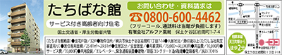 「自宅」「老人ホーム」という選択に限られてきたシニアの生活に新たな形が誕生し話題を集めている。60歳以上であれば単身(1人)でも安心して入居できる天王町のサービス付き高齢者向け住宅「たちばな館」で入居者の暮らしぶりを取材した。