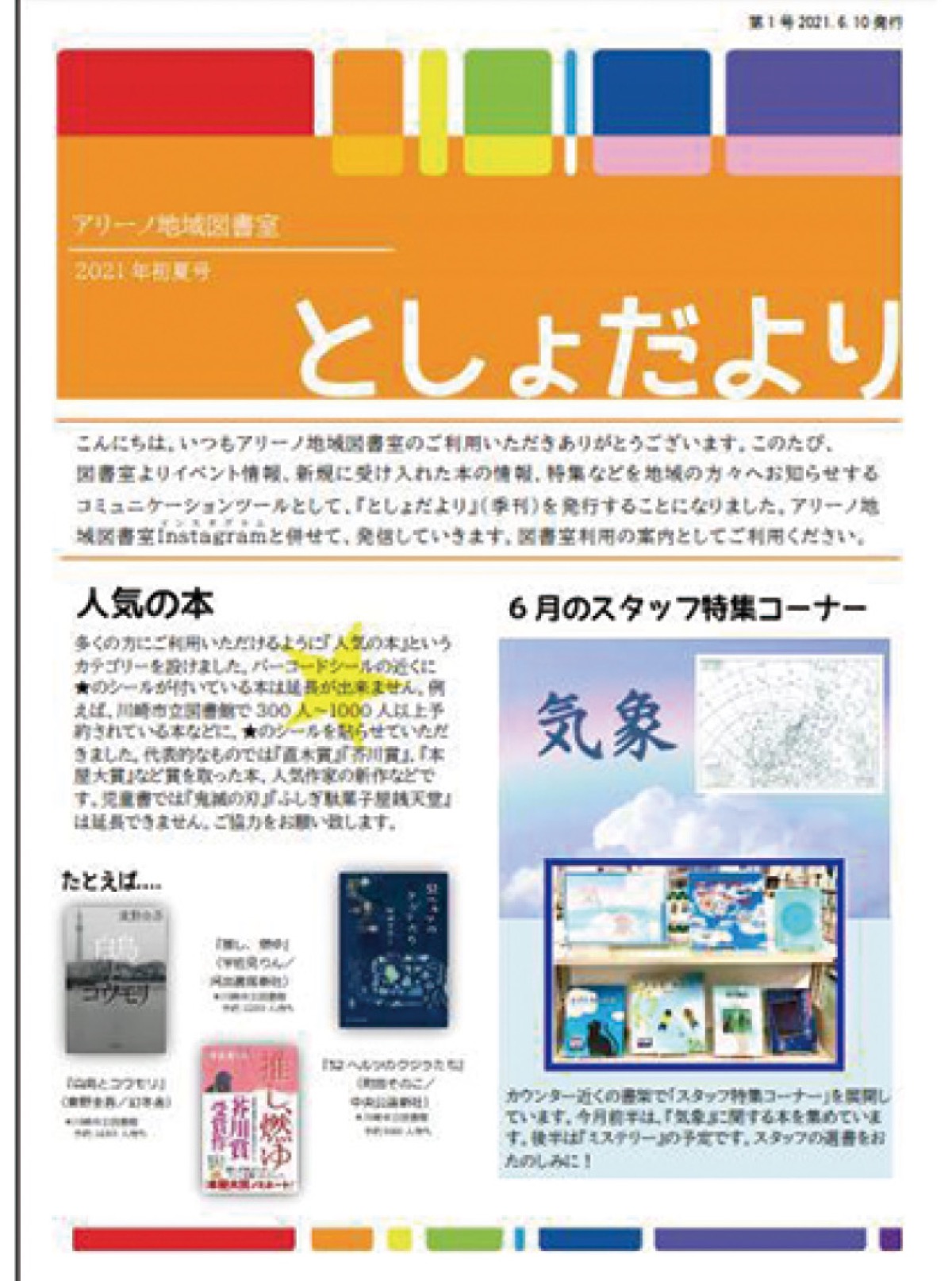 同図書室は6月、『としょだより』=写真右下=を発刊した。