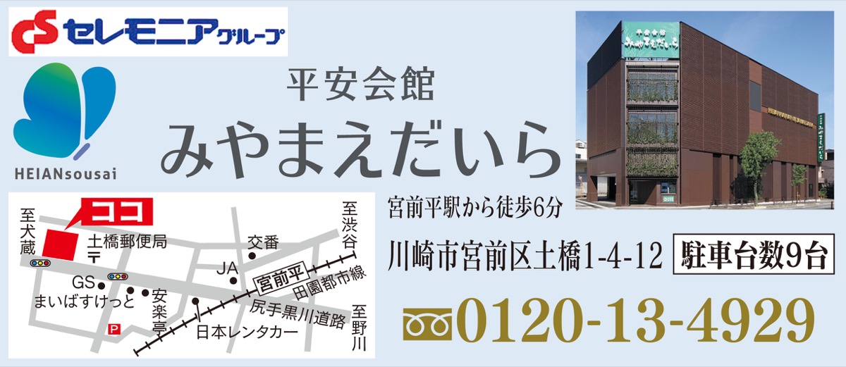 川崎で創業74年、全区に式場を展開し、地域に寄り添い「安心」と「信頼」を届けるセレモニアグループの平安会館。『平安会館みやまえだいら』では10月20日(金)に見学相談会が開催される。
