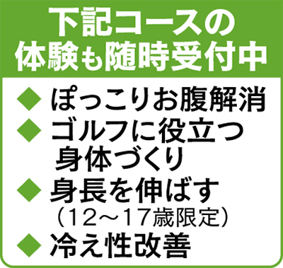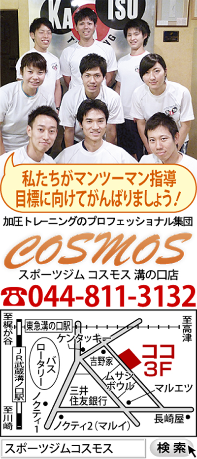加圧トレーニングで17年の信頼と実績を誇り、芸能人も利用する「スポーツジム コスモス」が7月から「美脚コース」をスタート。体験会を7月15日(月祝)に開催する。トレーナーによる、じっくりていねいなマンツーマン指導で、ヒップアップ効果はもちろん、X脚、O脚、下半身太り、むくみ、坐骨神経痛などの悩みも解消。参加費は5000円。「効果が実感できる体験会です。絶対に後悔させません」とスタッフ。加圧、ゴルフコースも用意。詳細はHPまたは問合せを。