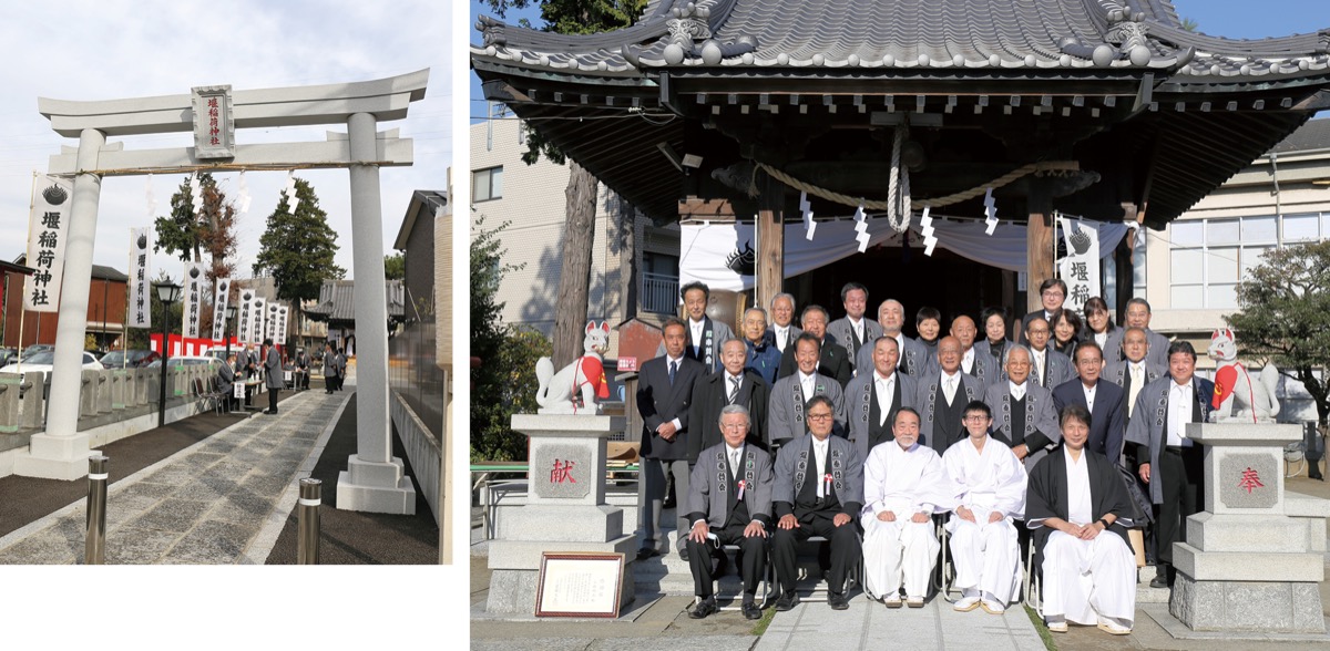 堰稲荷神社(金子善光宮司)で12月12日、参道拡幅や鳥居新調を祝う奉祝祭が開催された。昨年コロナで延期し、1年越しに実現。神職や巫女、氏子ら約70人が参加し、気持ちを新たにした。