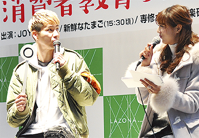 トークライブにはタレントのJOYさんが登場。消費者トラブルに関するクイズでは「1年以上通っていないスポーツクラブの会費を返還してもらうことができるか」や、「マルチビジネスに巻き込まれたとき、クーリングオフはできるか」といった若者に身近な内容が出題された。JOYさんは手元の札でクイズに解答し、自身が上京した際に知人からマルチ商法に誘われて断った経験があることなどを話し、身近なトラブルに注意を促した。