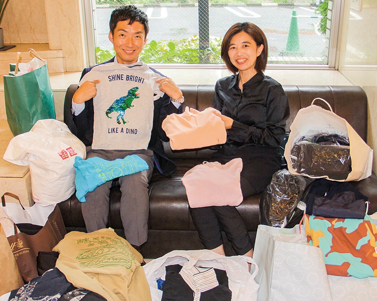 受け渡し場所となった厚木アーバンホテルに集まった衣類はTシャツからズボンまで152着。中には未使用の服もあり、桝本代表は「皆様のお気持ちに感謝。まずは必要な方に届け、服の循環・シェア活動にも使用していきたい」と笑顔で話した。