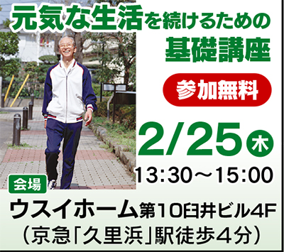 地元不動産会社のウスイホームでは2月25日(木)、シニア世代の大きな関心事である「健康」と「住まい」をテーマにした無料セミナーを開催する。
