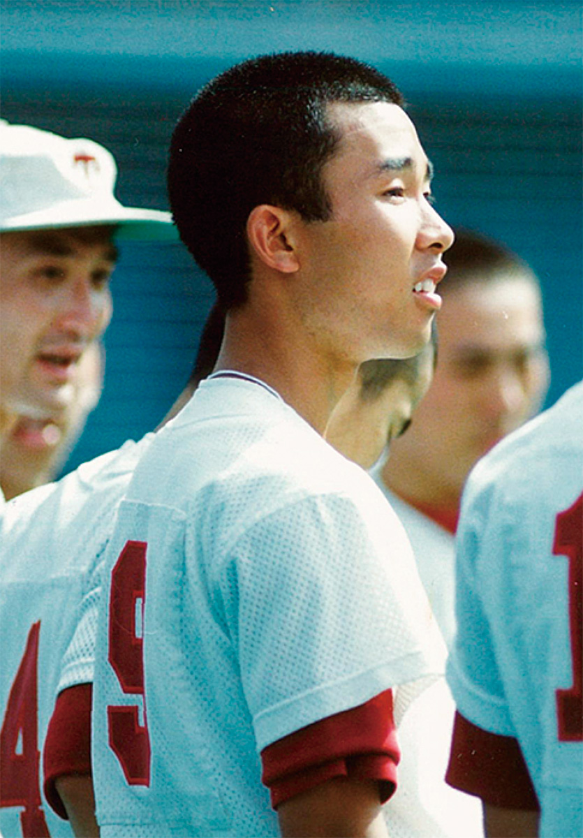 50mを6・0秒で駆け抜ける俊足の外野手だった。主力の3年生が抜けレギュラー争いが激しくなり始めたころ、不運にも交通事故に遭い利き手を負傷。約半年間、ボールもバットも握ることができないもどかしい日々が続いた。大好きな野球ができない―。退部も考えたが、毎日のように見舞いに来てくれる仲間の優しさにも支えられ、苦しい時間を耐え抜いた。