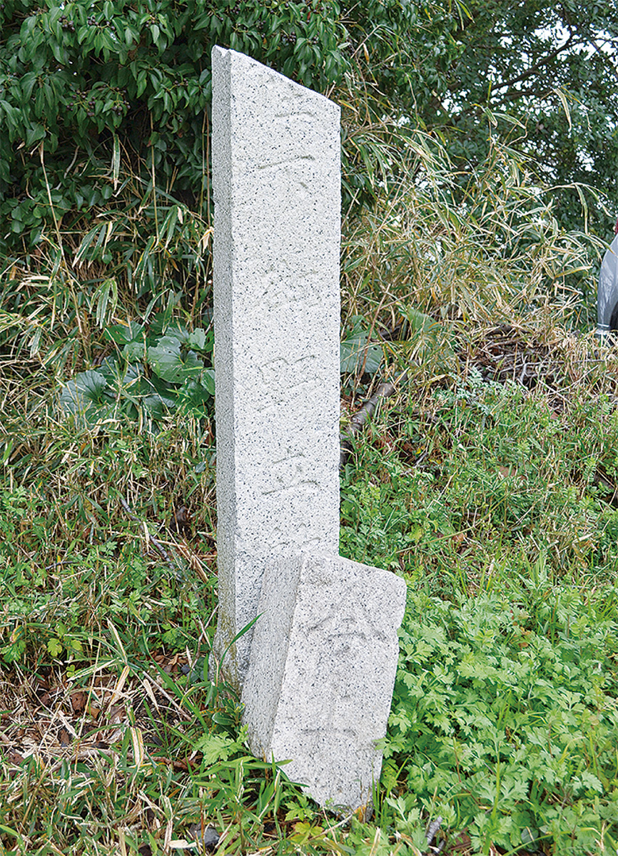 千代ヶ崎砲台跡の北側高地にある高さ約110cmの記念碑は、御影石でつくられている=写真。昭和天皇が昭和3年5月24日に東京湾要塞の視察に訪れたことを記念して、東京湾要塞司令部が建立した。現在は民有地となっており、朽ち果てて崩れ落ちた状態となっている。