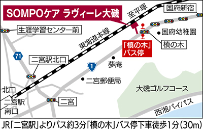 国道一号線から臨む、重厚な佇まい。優雅な雰囲気のエントランスは、まるでリゾートホテルのようだ。海に、山に、美しい大磯の自然に抱かれた、介護付きホーム「SOMPOケア ラヴィーレ大磯」の魅力を取材した。