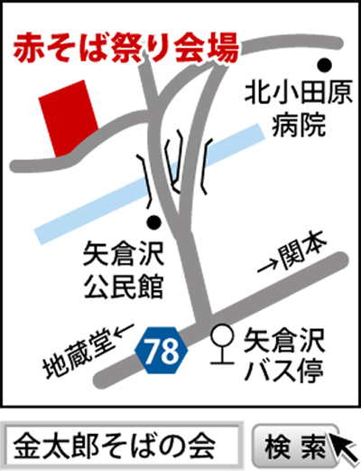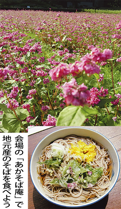 金太郎のふるさと南足柄市で「金太郎の赤い肌と同じ『赤そば』を植栽し、まちづくりに寄与したい」と活動しているのが、NPO法人金太郎そばの会。同会では10月21日から11月20日頃まで「第2回赤そば祭り」を開催する。会場では地元産のそば粉を使ったかけそばに、赤そばの花の天ぷらをのせた「特製天ぷらそば」も味わえる。矢倉沢バス停徒歩5分。周辺ではざる菊の花も見頃を迎える。(問)【電話】080・4350・2930。