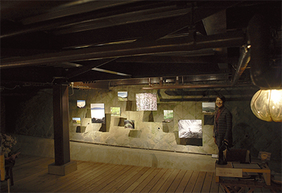 吉浜の住宅街(704-1)に、住宅の半地下部分を活用したギャラリー「凡太町2番地」が誕生した。展示しているのは、この上に暮らす音緒杏子さん(66)が撮りためた湯河原や真鶴などの自然美。もともとは愛犬「凡太」のために作った板張り空間だったが、真鶴や湯河原のギャラリーなどで共催する「アート散歩」に加わるため、展示用に変更。天井には生活用水などのパイプが行き交い、幻想的な光がほのかに照らす。今月23日に公開の予定。
