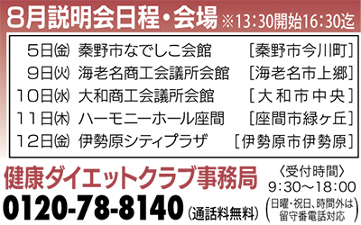 40歳〜75歳迄の女性から「キレイに健康的にダイエットできた」と好評の米国栄養学博士・松本玲子先生の健康ダイエットクラブ。