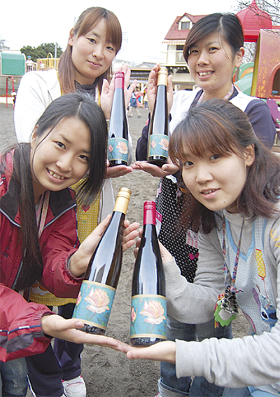 4年前、山梨県にワイナリー((株)四恩醸造)をオープンして以来、毎年地域にワインを贈っている同園。「愛情かけて育てた巨峰ワインです」と同園教諭は話す。ワインラベルには同園理事・掛本芳子さん(95)によるバラの絵が描かれている。