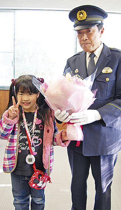 訪問当日は「新しい信号機にしてくれてありがとう。安心して通学できます」と坂口清晴副署長に挨拶。「このような訪問は初めて。気持ちを新たに地域の安全を守っていきたい」と話した。