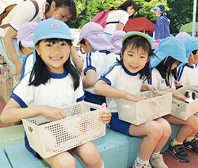 同園では6月から幼稚園見学会を実施している(要予約)。栄養満点の自園給食や生物を学ぶビオトープ「じゃぶじゃぶ池」なども見学可。2歳児対象(登録制)の園庭開放「サンサンKIDS」も募集中。