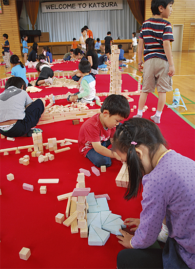 積み木を通した交流イベント「森のつみ木広場」(桂台コミュニティハウス・桂小はまっ子ふれあいスクール・あおばフレンズ主催)が今月18日、桂小学校体育館で行われた。