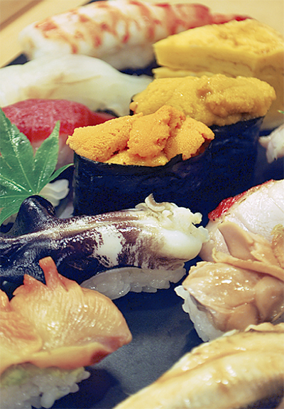 毎日市場に足を運び、鮮度を見抜き、安く素材を手に入れる。旬のお勧めは『ムラサキウニとバフンウニ』。「新鮮なウニに渋み、臭み、苦味はない」と大将。良質な昆布で育つ利尻島産ウニの甘みと磯の香りが口に広がる絶品だ。