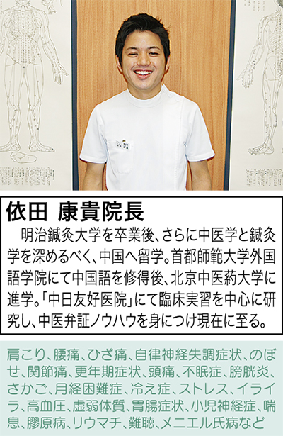 交通事故の後遺症などに代表される”むちうち”。重度になると、『頸が動かない』『めまい』『吐き気』『手足のしびれ』など多くの症状を併発する。「軽度のむちうちは、西洋医学で回復させていきますが、重度のものは治療が難しく東洋医学の鍼灸治療と併せて痛みを緩和させていきます」と依田院長は話している。
