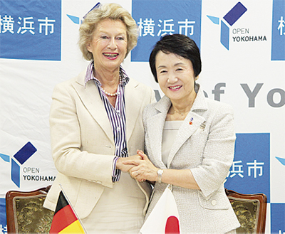 横浜市は日独交流150周年を記念し、独フランクフルト市と経済・環境・文化芸術分野でパートナー都市として提携した。先月末に両市の市長が調印式を行った。欧州都市との提携は初。市は今後3年間で企業誘致などを行い、「ハマの活性化」につなげる狙いだ。