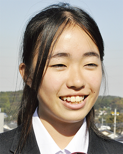 ○…話す声は、細く透明感があり、その口調もおっとり。おしとやかな印象だが、バドミントン部に所属し、仲間とともに汗を流す。「ふたりで協力し合って楽しめるダブルス戦が好き」。バドミントンの魅力について、「力いっぱい打ち込みができるところ」と頼もしい一面も見せる。