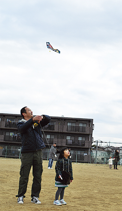 当日、参加者らは上手に風を利用し凧を揚げていた。娘と一緒に参加した大田肇さんは「30年ぶりに凧揚げをした。最近は広場が減っているのでいい機会だと思う」と話した。