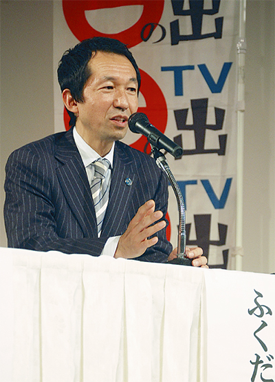 当日は福田氏が代表兼キャスターを務めるインターネットTVの公開生配信(=写真)が行われた。また、挨拶では年金、消費税、医療制度に触れ「世代間で負担に大きな差があってはならない。そのために『世代間ギャップ』を是正するための変革を訴えたい」と話した。