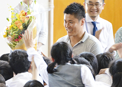 川島選手が市ヶ尾中に