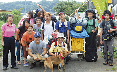 のむぎO・C・S(オープン・コミュニティ・スクール)高等部は現在、区内寺家町から長野県北安曇郡小谷村までの約300Kmを歩く「300キロ・トリップ」を実施している。今月21日には出発式が行われ、高等部の生徒3人を含む計8人がゴールの小谷村を目指してスタートした=写真。