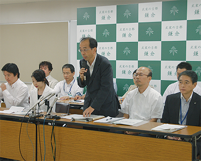 「武家の古都・鎌倉」の世界遺産登録の可否を左右するイコモス(国際記念物遺跡会議)による調査が9月27日に終了したことを受け、同日、文化庁・国土交通省と4県市の記者会見が鎌倉市役所で行われた。