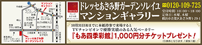 10月31日(水)までにマンションギャラリーに本紙持参で来場すると、人気ベーカリー「もあ四季彩館」の1千円分お買い物券をプレゼント。買い物がてら気軽に訪れてみては。
