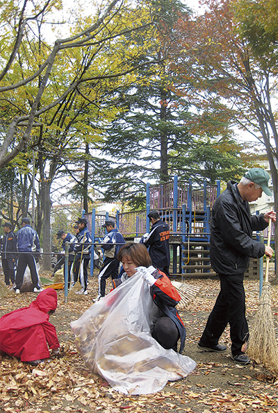 当日は、ごみ袋200個分の落ち葉を収集。地元野球チームのメンバーは「馴染み深い公園を日ごろのチームプレーで清掃できた。いい体験になった」と振り返った。