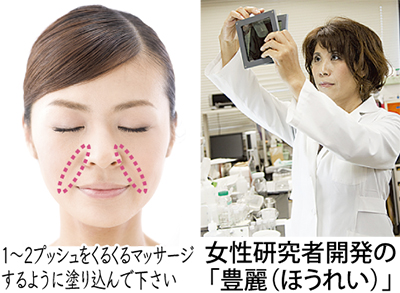 聖マリアンナ医科大学の皮膚科学研究から生まれた口もと年齢美容液『豊麗(ほうれい)』(発売(株)ナノエッグ)が発売2年で22万本を突破、大きな反響を呼んでいる。アンケートでは50代〜60代の女性から、「口もとにふっくら感が」「すーっとなじむ感じが気持ちいい」※2と高い支持を得ている。