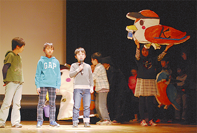 発表したのは同校4年2組の児童29人。同校近くを流れる黒須田川に、親しみを持ってもらおうとマスコットを制作したことを発表した。