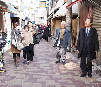区と青葉区商店街連合会(加藤芳範会長)が商店街の魅力向上を目的に2月26日、独自の集客方法で商店街活性化を試みる向島銀座橘商店街(東京都墨田区)を視察した。区は「商店街離れが進む中、市外商店街を視察することで区内商店街の魅力アップにつながれば」と期待を寄せる。区と区商連が一緒に商店街を視察するのは今回初めて。