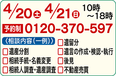 これらの悩みを解決するため、相続問題を多数取り扱ってきた弁護士法人港国際グループ(横浜弁護士会)主催の無料相談会が4月20日(土)、21日(日)、同法人の溝の口事務所で開催される。