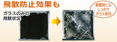 また、地震など衝撃時にも飛び散らず、ガラスを保持してくれるので、破片による二次災害を防げるのも魅力的だ。