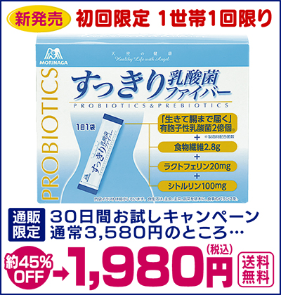 今なら、1箱30日分(通常税込3580円)を、約45%引きの、1980円でお試しできるキャンペーンを実施中です。この機会に、朝から「スッキリキレイ生活」を始めませんか?